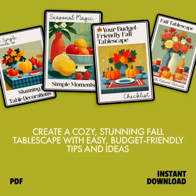 Just downloaded this bundle and I'm already in love! The guide to stunning fall table decorations is so easy to follow. My dining room has never looked more inviting.