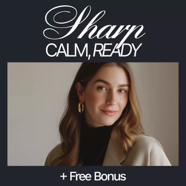 Don’t leave your first impression to chance. Download Sharp, Calm, Ready today and step into your high stakes job interview with the confidence, style, and calm presence you deserve.